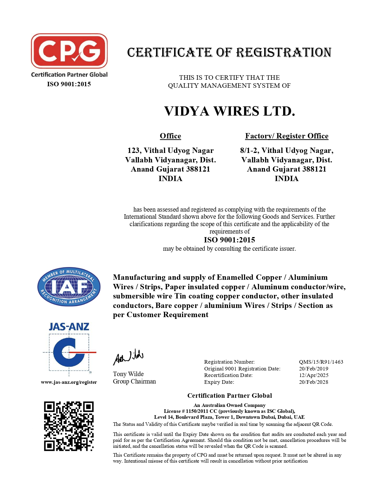Vidya Wires’ manufacturing facilities are accredited with ISO 9001:2015 (Quality Management System), ISO 45001:2018 (Occupational Health & Safety Management System), and ISO 14001:2015 (Environment Management System). Our products meet various quality standards, including those set by the Bureau of Indian Standards (BIS). The company has a dedicated 20-member quality control team responsible for inspecting raw materials and finished products to ensure they meet customer specifications. Additionally, we regularly have our product samples tested at NABL-accredited labs to verify and compare results with those obtained from our in-house laboratory.
